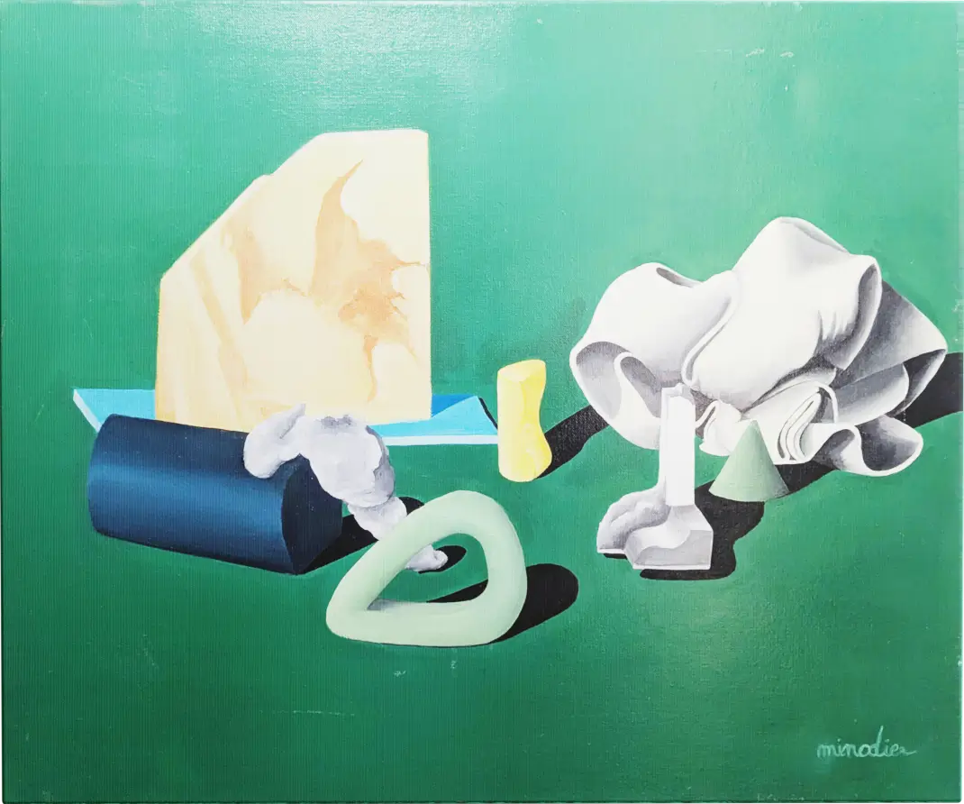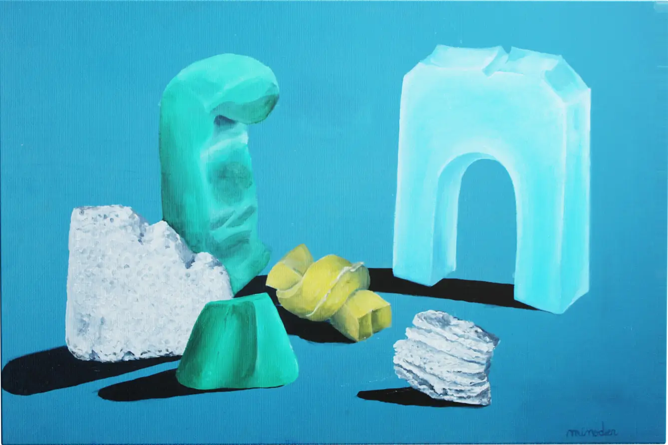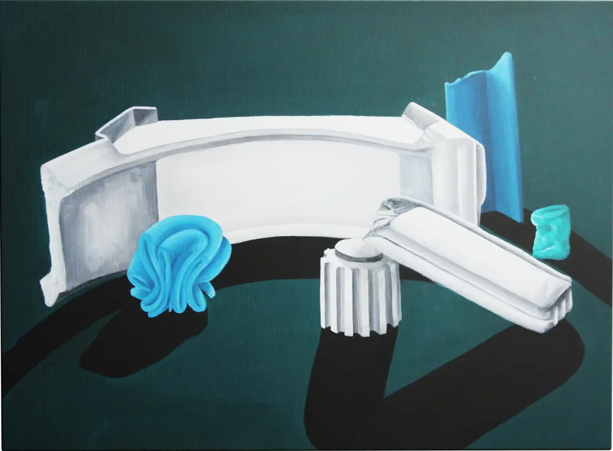I’m interested in objects that no one pays attention to, things without value, or those made solely to be useful. I feel empathy for these forgotten items and make them mine by studying, analysing, and recreating them. Everyday, ordinary things might seem boring, but to me, they are full of stories and imagination. I try to bring them into the spotlight by playing with shapes and perspectives.I use oil painting and weaving, two slow and traditional techniques, to create a contrast with the simple objects I work with. A toolbox becomes a jewellery box. A small stone becomes a precious gem. I also use 3D and graphic design as tools and media to develop and implement my research.
